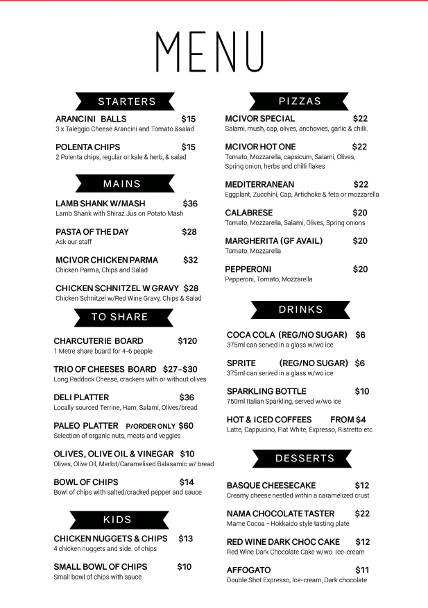 Please find our latest menu below. We look forward to serving you soon at McIvor Estate Winery